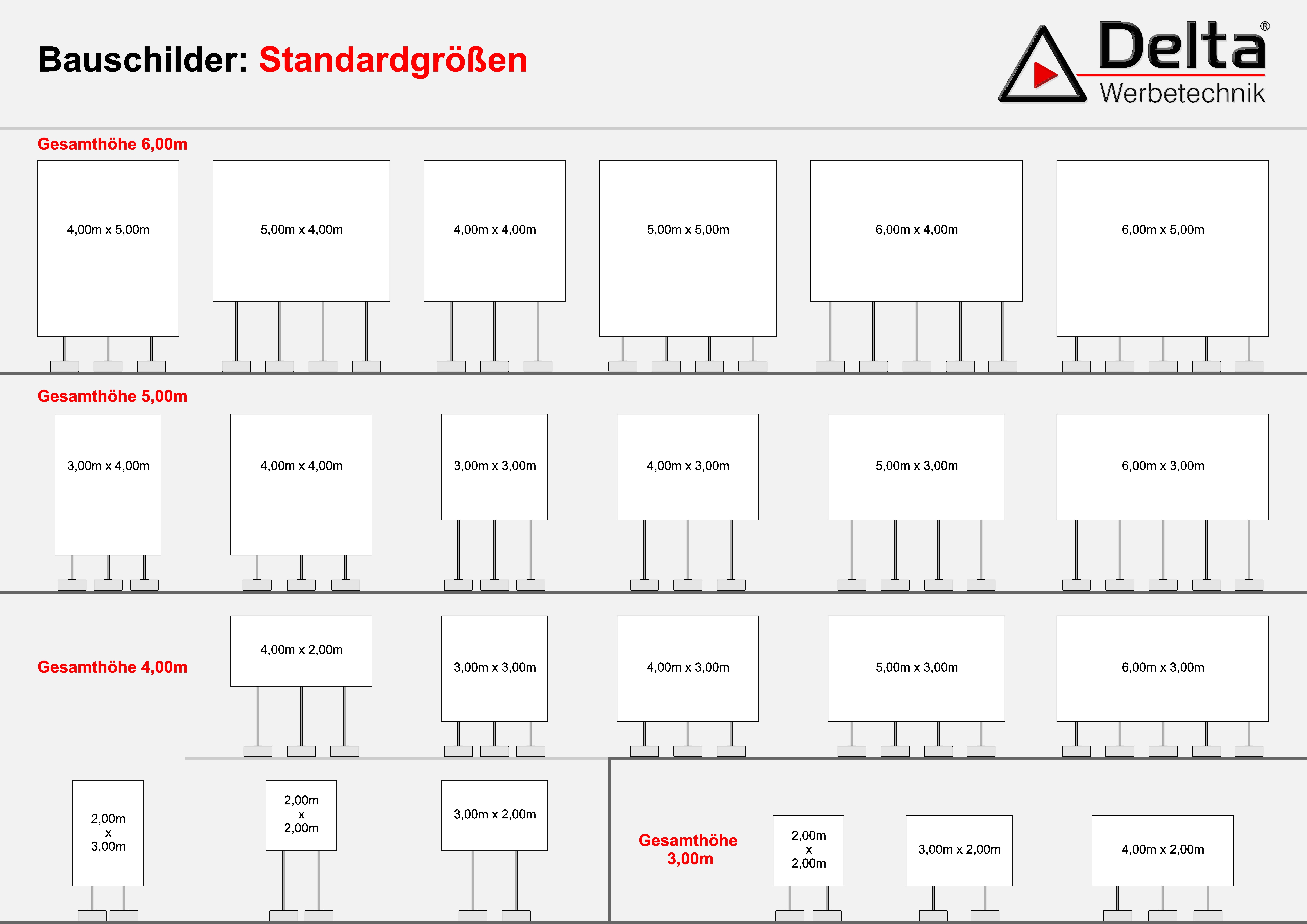 Zwischen der Unterkante des Schildes bzw. der Planenhalterung und Boden muss technisch bedingt mindestens 50cm Bodenfreiheit bleiben. In den meisten Fällen ist dies nicht relevant, da der Abstand zwischen Boden und Schild meist 1m oder mehr beträgt. Der am häufigsten gewählte Bodenabstand ist 2,0m